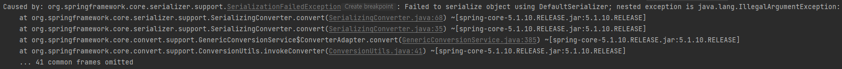 DefaultSerializer requires a Serializable payload but received an object of type [...] 본문