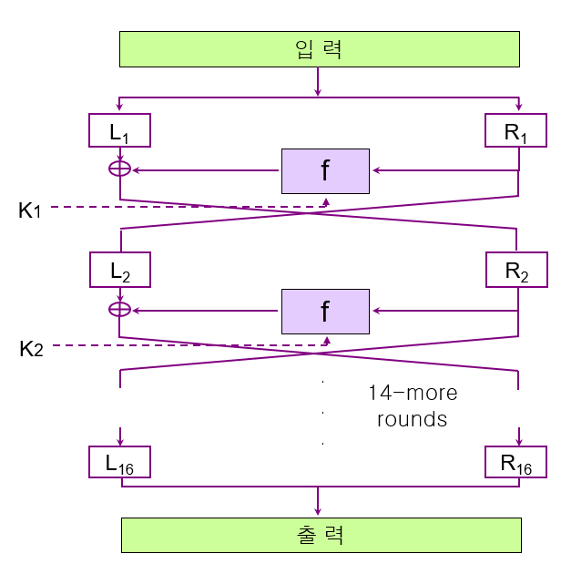 • 대부분 Feistel cipher structure에 기반