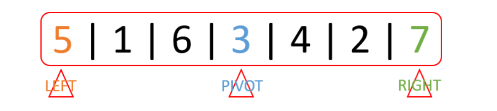그 다음, pivot을 제외한 나머지에서 가장 왼쪽은 left, 가장 오른쪽은 right로 둔다.