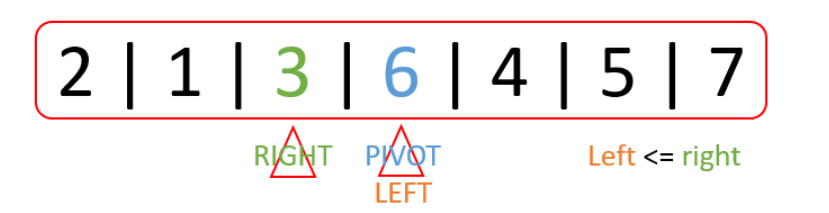 그러면 left가 right보다 커진다. 그럼 정렬을 그만한다.