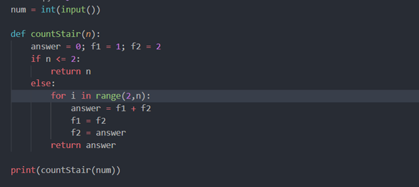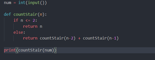 // 반환값 : N개의 계단을 하나 혹은 둘 씩 올라가는 방법의 수
