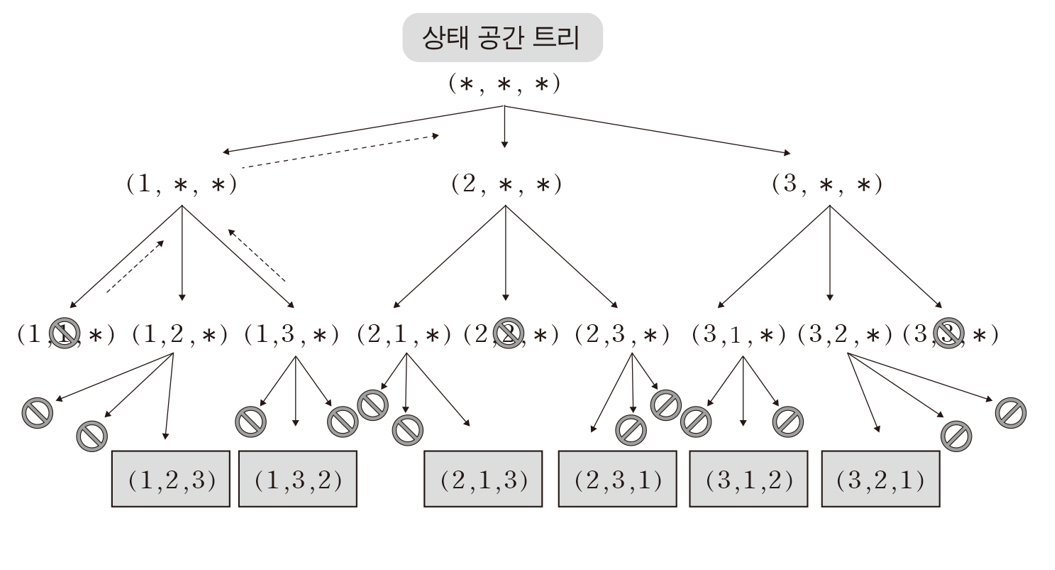 - <1, 2, . . . , N>의 모든 순열을 생성하라.