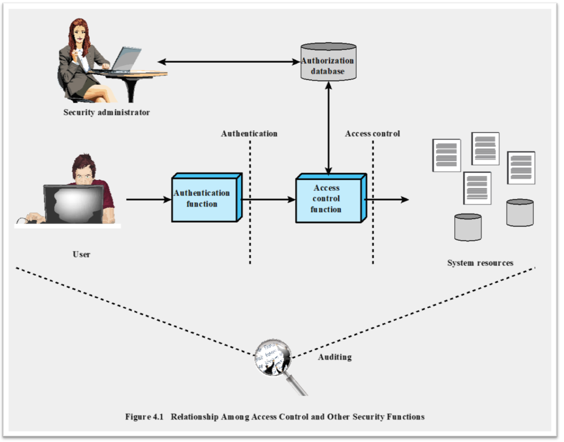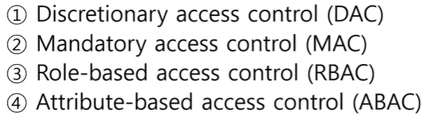 - Access control function : 예를 들어 사용자가 시스템 자원을 읽고 싶다. 그러면 사용자가 Read권한이 있는 지 검사.