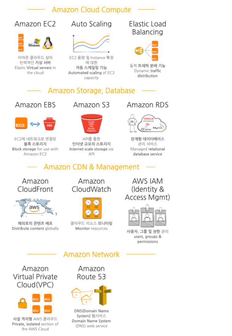 AWS는 지금은 흔히 클라우딩 컴퓨팅이라고 알려진 웹 서비스 형태로 기업에 IT 인프라를 제공하기 시작했다. 클라우드 컴퓨팅의 주요 이점 중 하나는 초기 기본 인프라 비용을 비즈니스에 맞춰 조정되는 저렴한 가변 비용으로 대체할 수 있는 기회가 된다는 점이다. 클라우드를 도입하면 더 이상 서버와 기타 IT 인프라를 몇 주 또는 몇 개월 전부터 미리 계획하고 조달할 필요가 없다. 즉, 유저가 직접 서버를 구입하고 설치할 필요없이 AWS 상에서 클릭 몇 번으로 서버를 구축하고 사용할 수 있다.