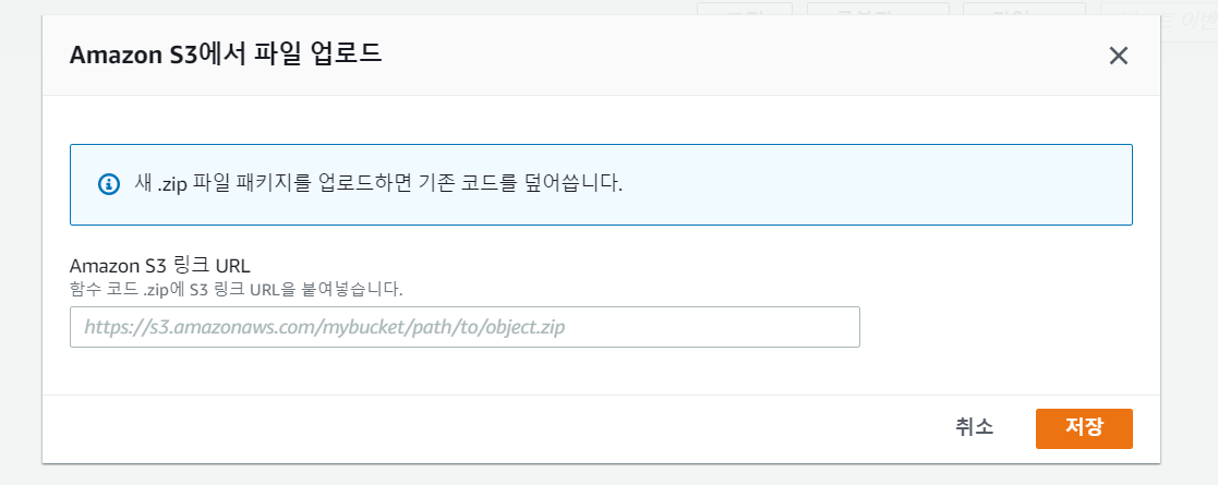 ■ 함수 코드 섹션에서 드롭다운을 열고 Amazon S3에서 파일 업로드를 선택해줍니다.