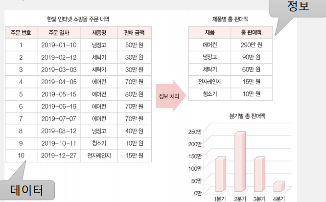 ■ 정보: 의사 결정에 유용하에 활용할 수 있도록 데이터를 처리한 결과물