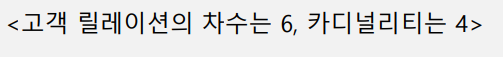- 삭제: 부모 릴레이션은 참조하는 테이블을 같이 삭제할 수 있어서 금지하거나 다른 추가 작업이 필요하다. 자식 릴레이션은 바로 삭제 가능하다.