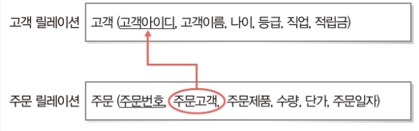 ex) 고객(고객 아이디, 고객 이름, 나이, 등급, 직업)