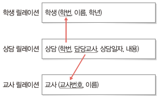> 참조되는 릴레이션 : 외래키가 참조하는 기본키를 가진 릴레이션