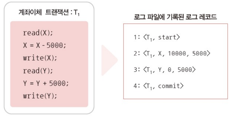 > 데이터 변경 연산이 실행되면, 로그 파일에 로그 레코드를 먼저 기록한 다음 데이터베이스에 변경 연산을 반영