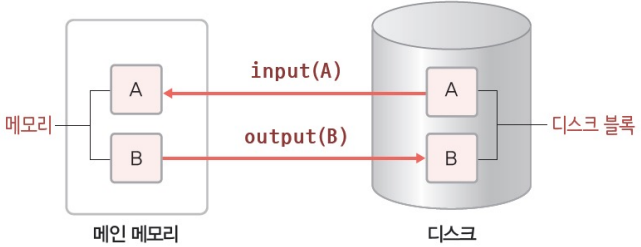 - 블록 단위로 수행된다. ( 디스크 블록: 디스크에 있는 블록, 버퍼 블록: 메인 메모리에 있는 블록 )
