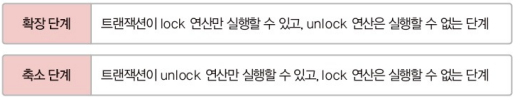 > unlock 연산을 실행하면 축소 단계로 들어가 unlock 연산만 실행 가능