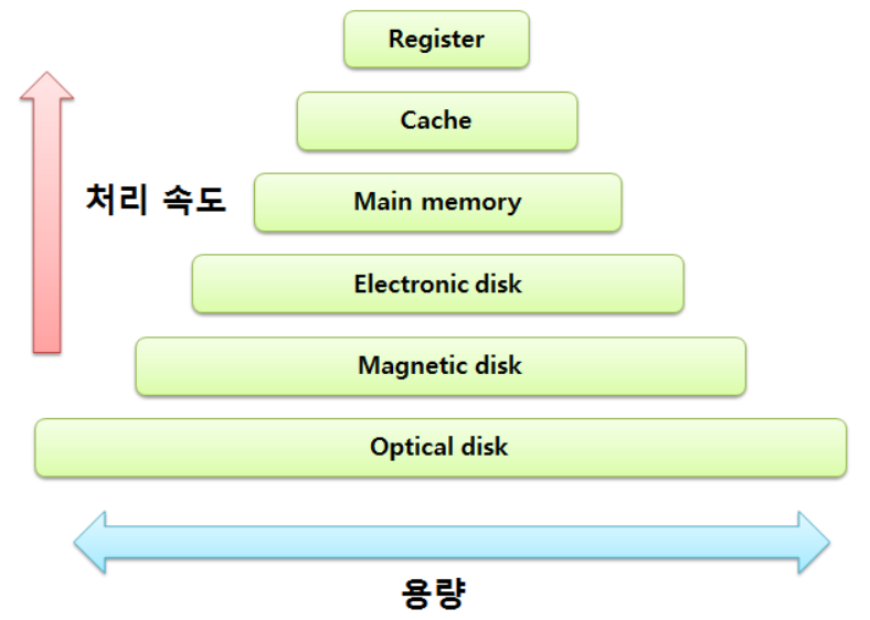 - 상위 레벨은 가격은 비싸지만 빠르고, 하위 레벨로 갈수록 가격은 감소하지만 접근 시간은 증가한다.