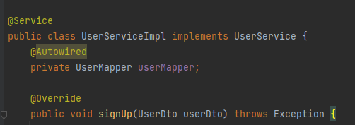 이게 서비스 자체가 bean에 등록이 안되어 있는 것 같아서 서비스 파일을 천천히 읽어보니...