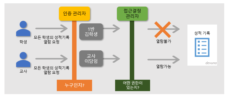 또한 인증 관리자와 접근 결정 관리자를 통해서 사용자의 자원 접근을 관리한다.